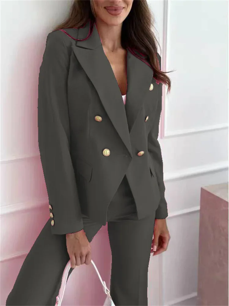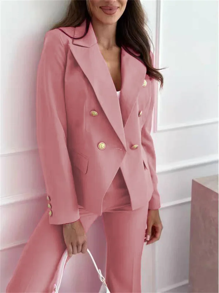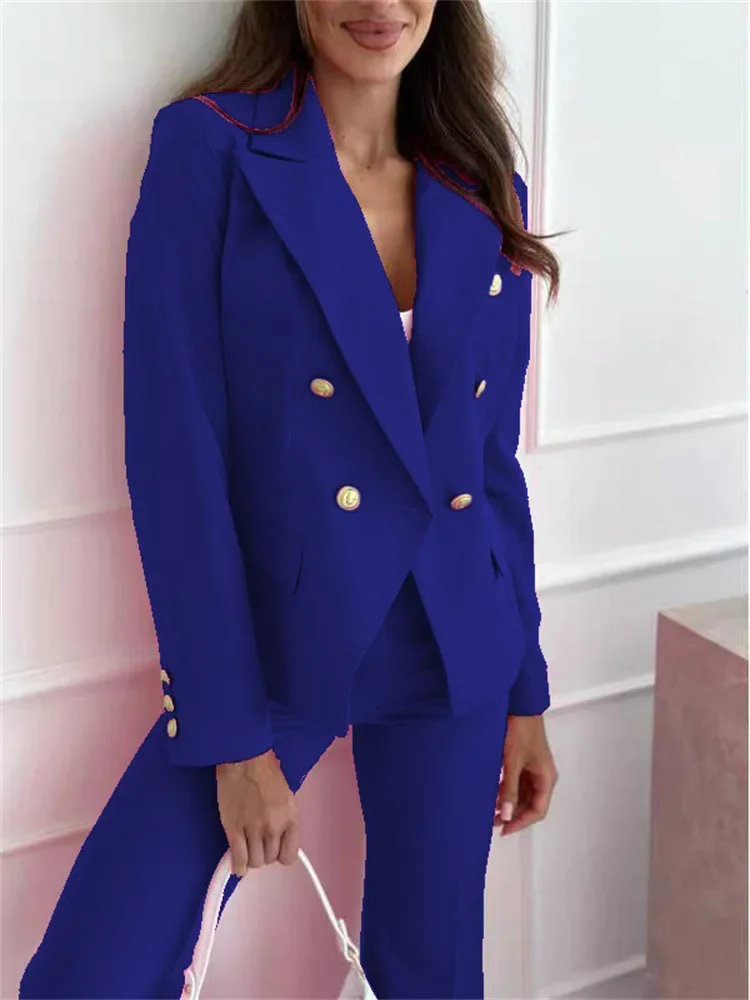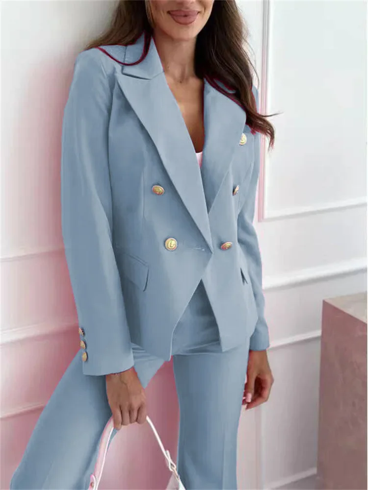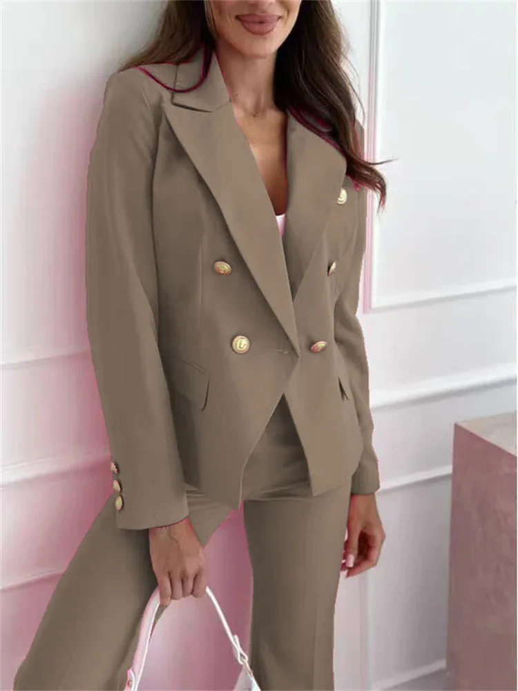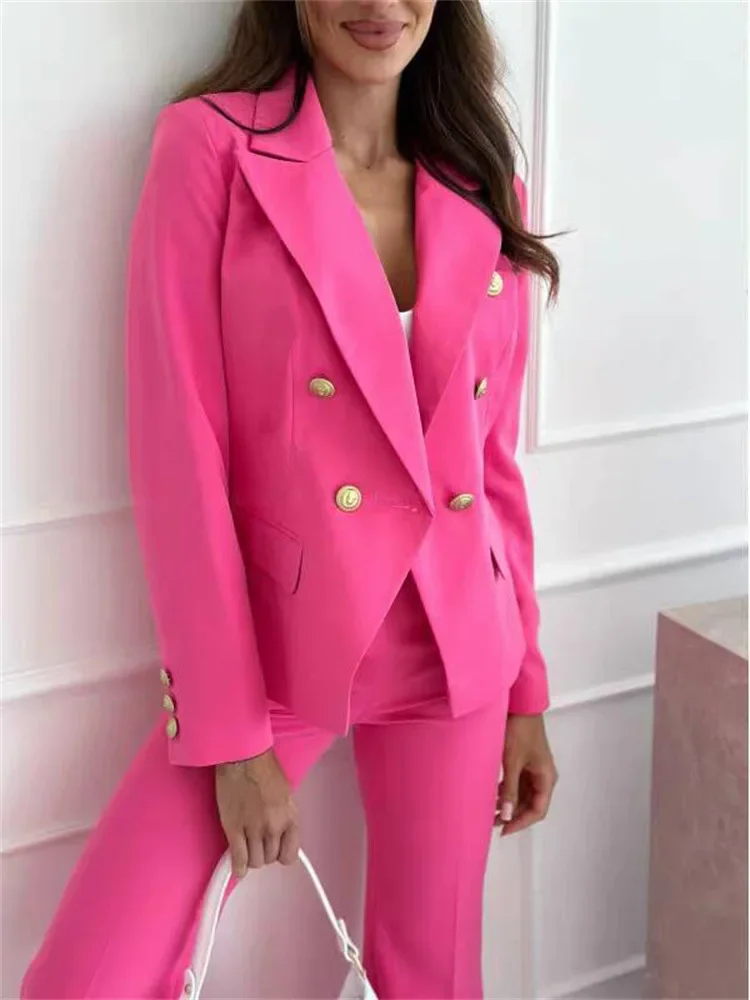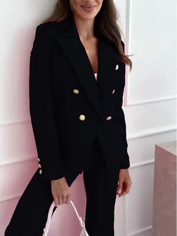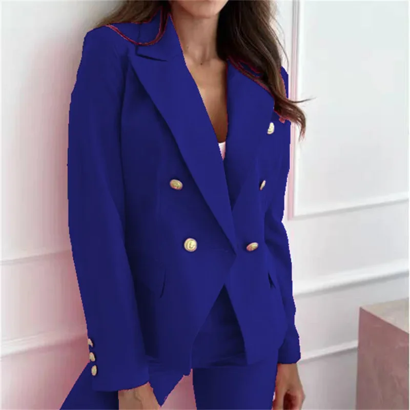 Slim Fit Double Breasted Ladies Suit Jacket Thin Commuter Style Waist Cinching Outerwear V Neck Full Sleeve Elasticated Cuff