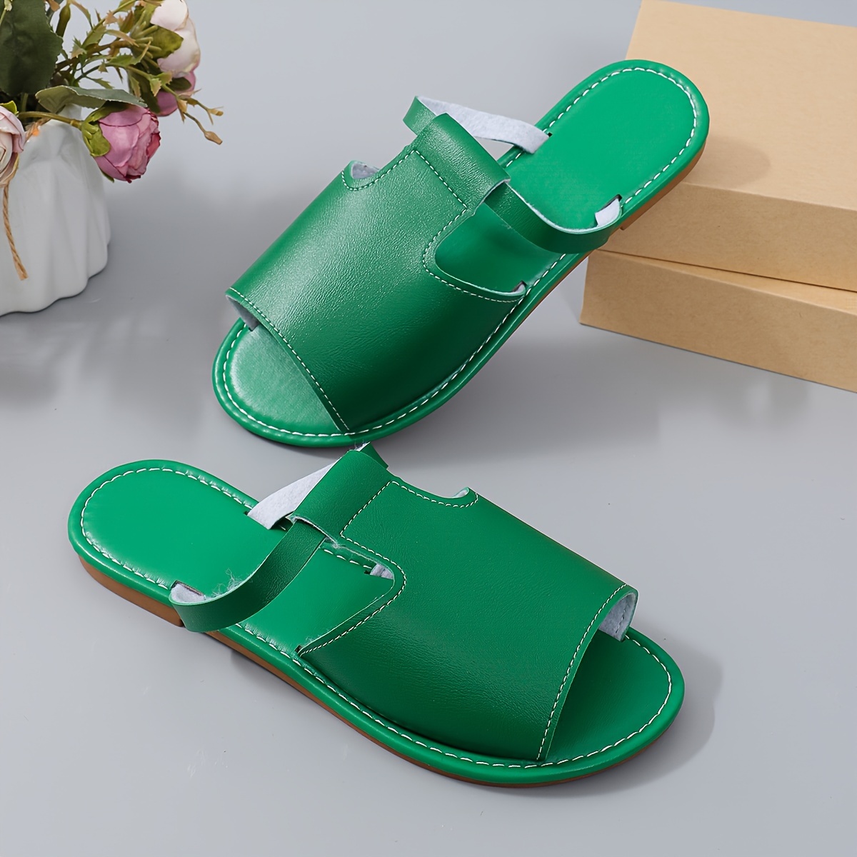 Stylish Womens Flat Slide Sandals - Soft Faux Leather, Slip-On Design, Lightweight, Breathable, Rubber Sole, Open Toe, Mary-Jane Strap - Perfect for Outdoor Activities and Casual Occasions
